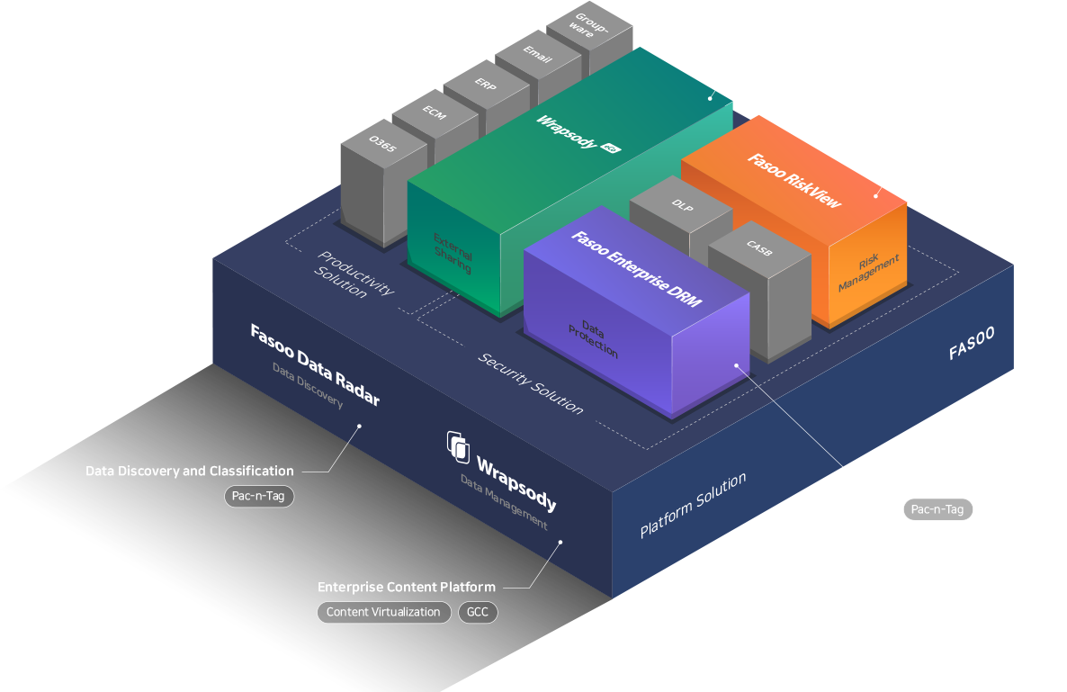 Fasoo provides unstructured data security, data governance, and AI-powered enterprise content platforms to help organizations discover, classify, protect, and manage critical information assets while boosting productivity. Our solutions enable secure information sharing, AI-ready data management, and simplified compliance with evolving security regulations. With Enterprise DRM (EDRM), Data Security Posture Management (DSPM), and Zero Trust Data Pillar solutions, Fasoo secures millions of users across 2,000+ organizations worldwide, spanning industries like automotive, semiconductor, energy, telecommunications, and other high-tech sectors. Our technology protects clientsβ intellectual property and sensitive data in the form of Office documents, PDFs, CAD files, and images.